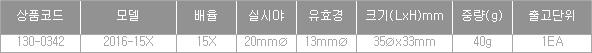 ▶2016-15X | 15X | 20mmØ | 13mmØ | 35Øx33mm | 40g | 1EA | 현재보고계신상품 |