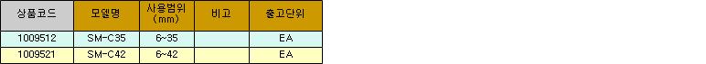 모델명 | 사용범위(mm) | 비고 | 출고단위 | |