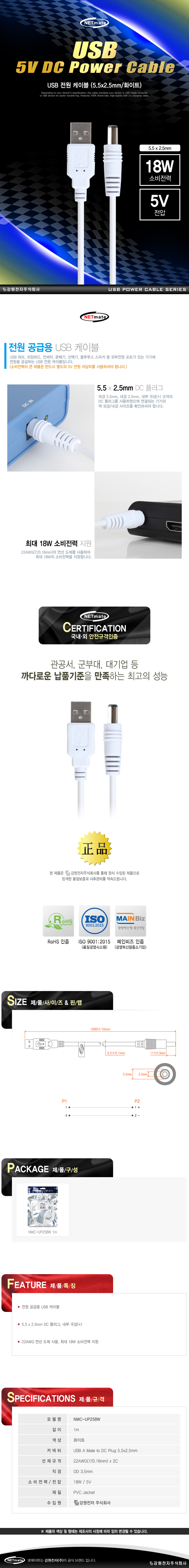 NM USB 전원 케이블 1m 5.5x2.5mm 18W 화이트